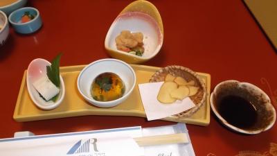 田上駅に到着するとすでにホテルの送迎車が待っていてくれました。純和風の佇まいでゆったり寛げる雰囲気。WIFI完備で露天風呂は野趣あるぬるめの湯、内湯はちょうど良い湯加減。2Fり10畳和室白菊の間という部屋で夕食をいただきました。
