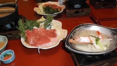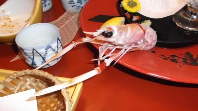 夕食は新鮮なお刺身中心の料理で満腹、特にお吸い物は丼一杯でカニ、豆腐、甘海老、他食材が盛りだくさんで美味でした。翌日は寺泊魚市場通りまで送っていただきました。- 旅行時期
