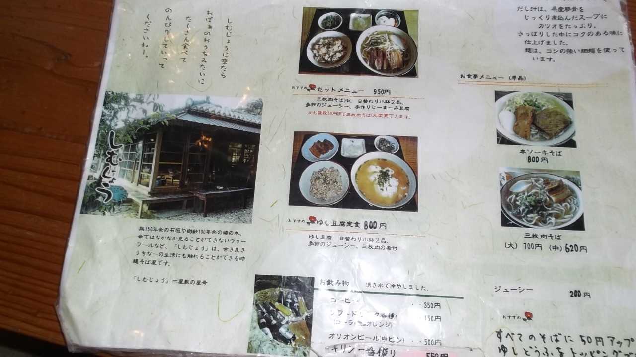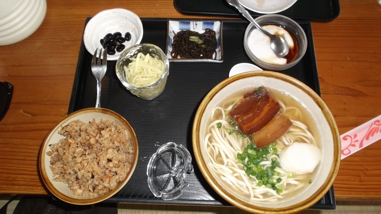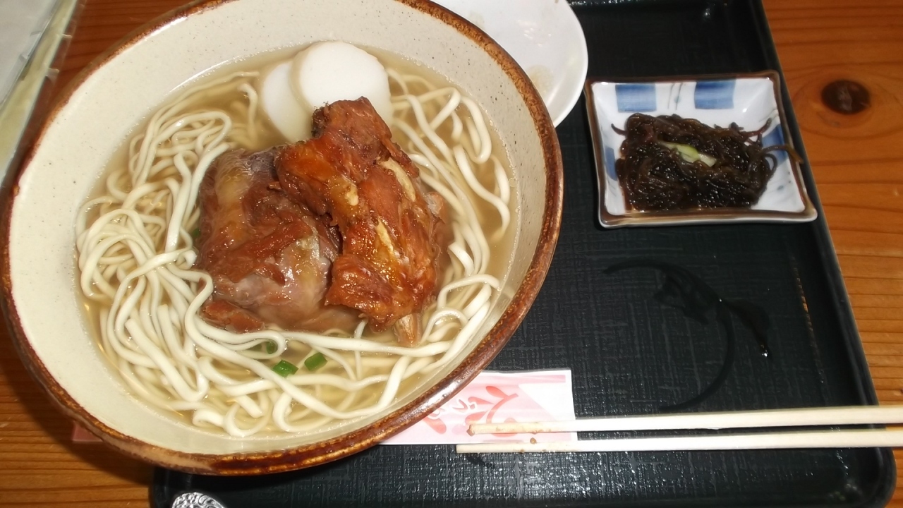 本ソーキそば800円など他メニュー多数、高台なので市街地が臨めます。- 旅行時期