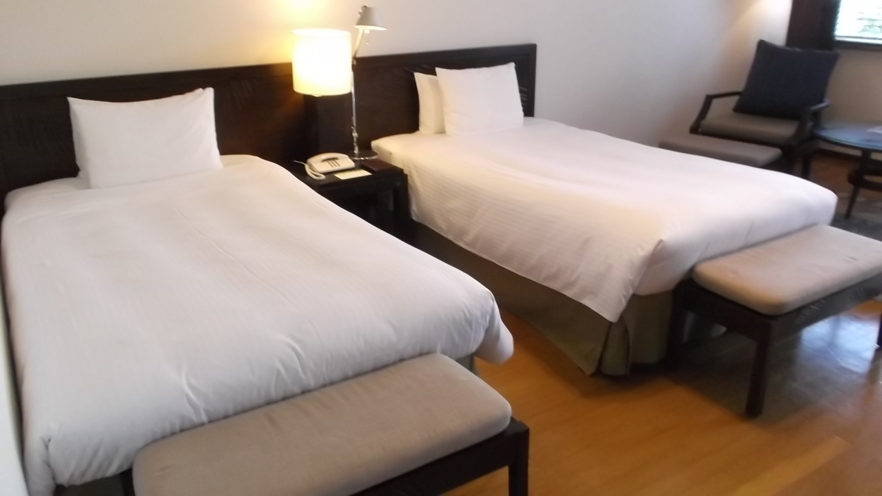 ガーデンツインルーム28㎡をガーデンデラックスにアップグレードしてくれるサービスがサープライズでありました。園内広くカートで荷物を運んでくれて移動。