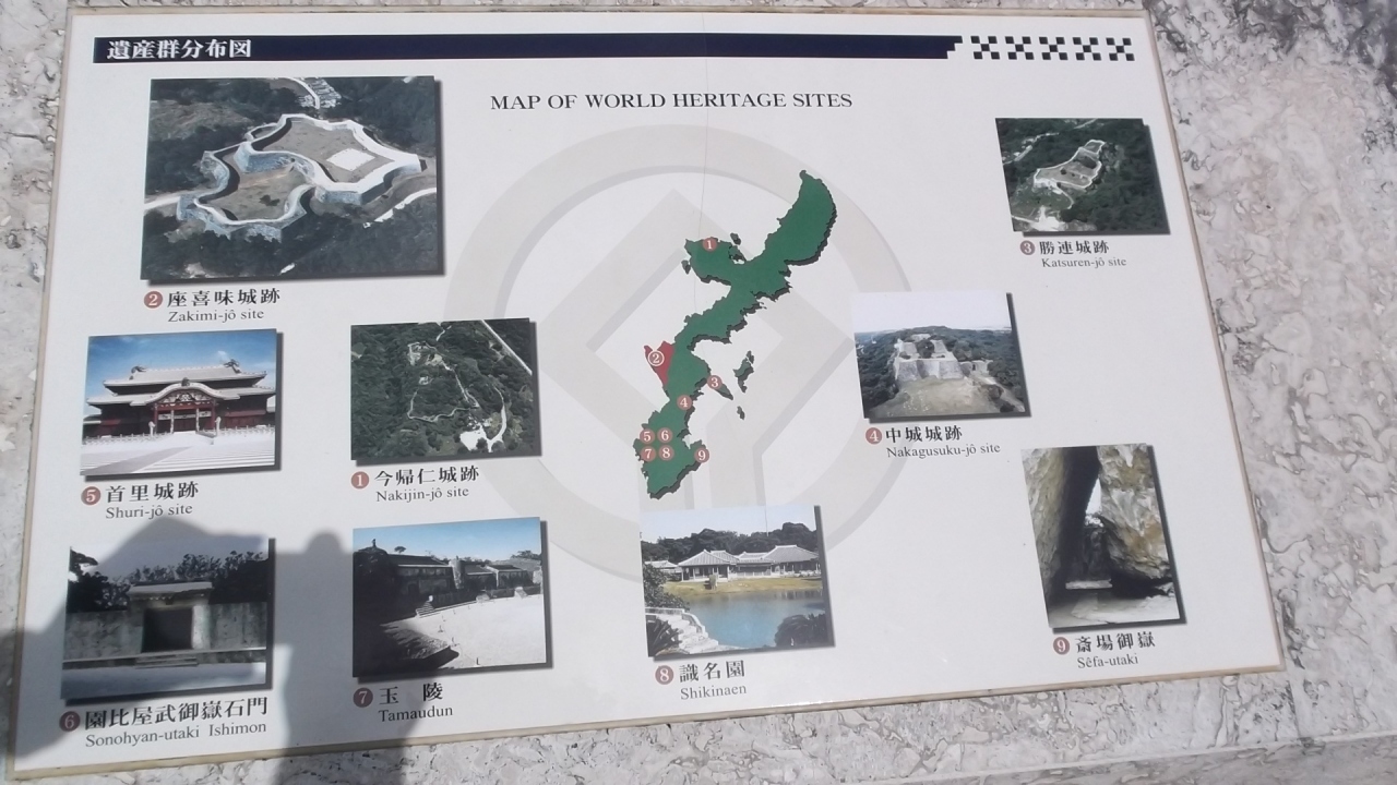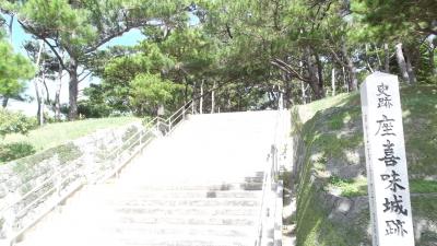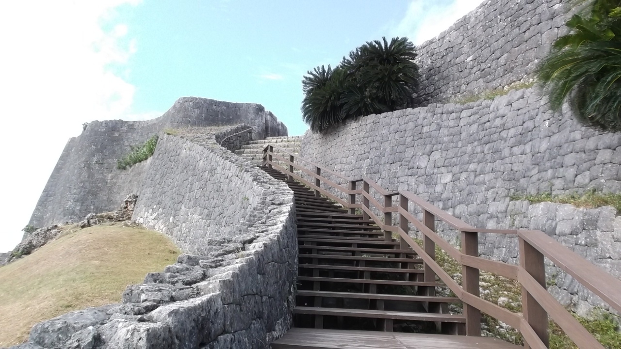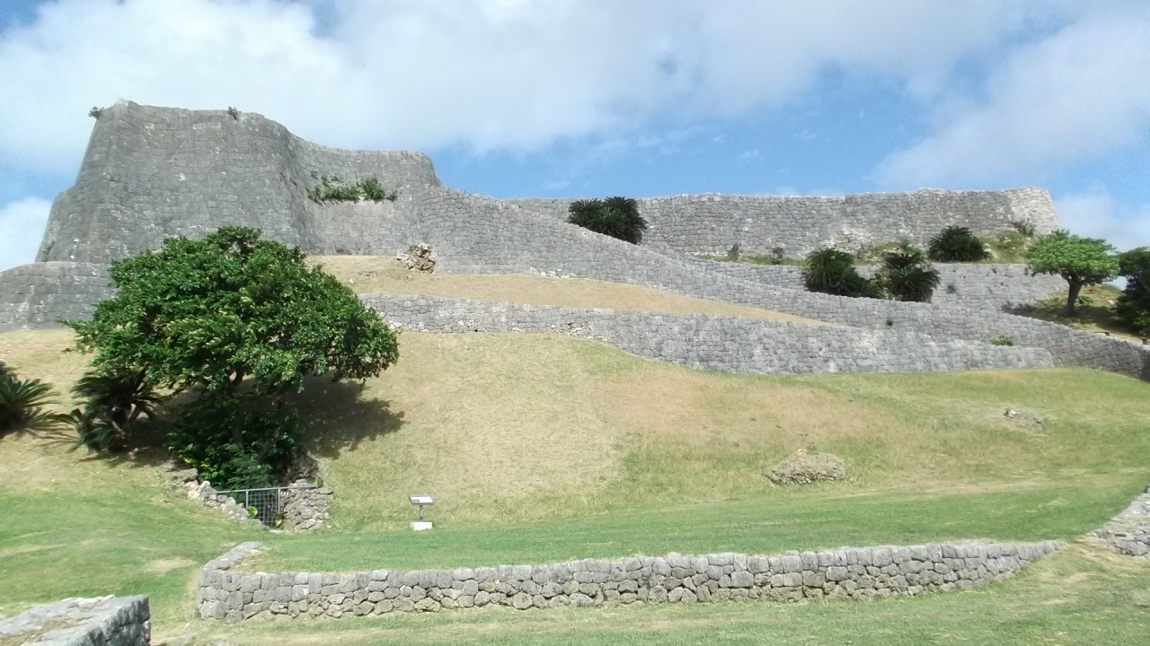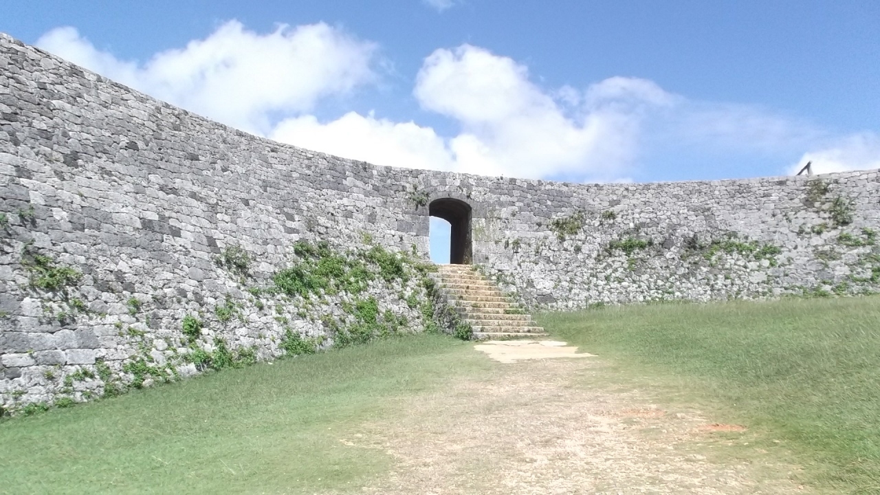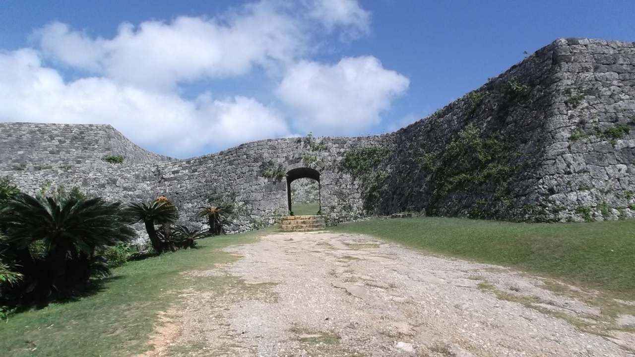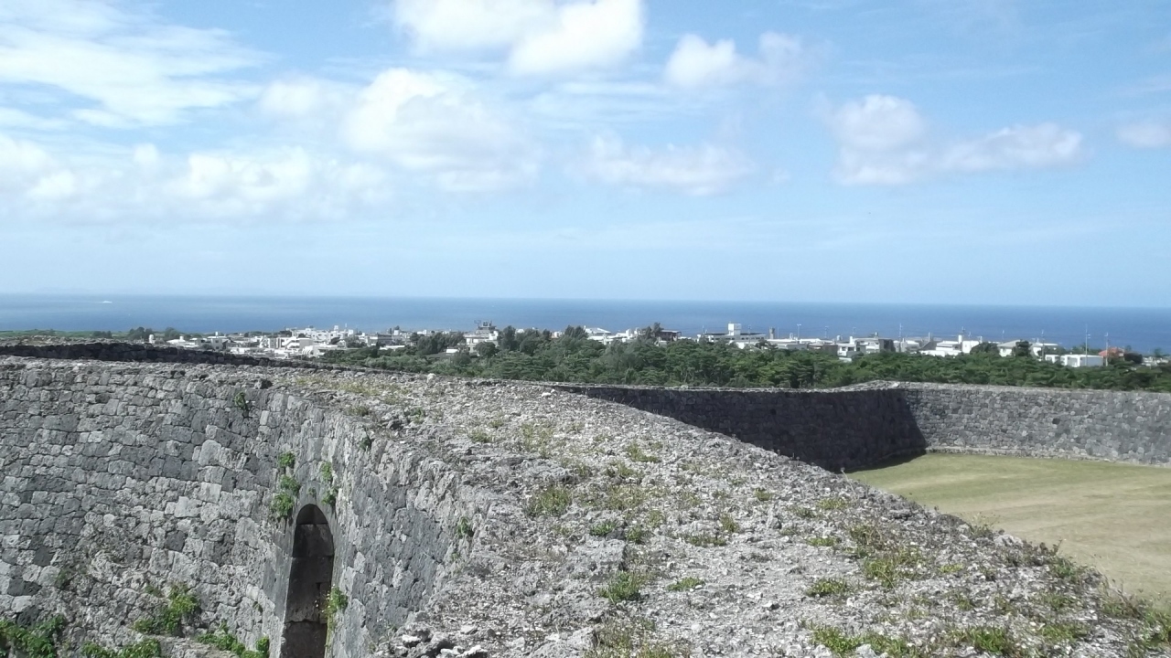 宿泊地の恩納村から車で約30分程度でしょうか。ここは琉球王朝時代の風情を今に伝えています。無料駐車場から階段を登り詰めると城壁に囲まれたたくさんの遺跡や遺物を見ることが出来ました。また本島東に位置しているので太平洋側の海が臨めます。