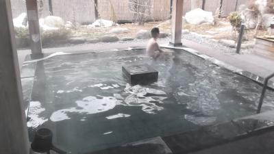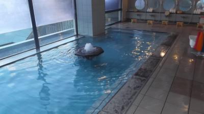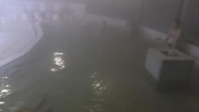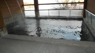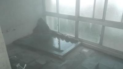 館内は家族連れには持って来いの施設がいっぱい。カラオケ・ゲームコーナー・卓球台、そしてエステ。風呂は三段壁を思わせる巨大岩で囲まれ、その中を滝のごとく湯舟に流れ込む露天風呂と内湯。ナトリウム-塩化温泉ということで湯は柔らかく長湯も可能な適温。一人泊なのに広々とした部屋にキングサイズベッド。言うことなしでした。