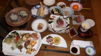 朝夕とも会席膳で地元の食材と地酒で会話も弾みました。- 旅行時期