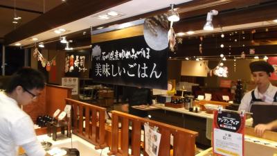 公立学校共済組合やすらぎ宿ということですが、とても豪華で結婚式場としても利用されています。当日も成人の日ということでパーティが各会場で催されていた。シングルで予約してありましたが、部屋が空いていたということで8Fのツインルーム(広々)が用意されていました。夕食はホテル内レストラン『六つあおい』で「紀州と北陸の胡麻フライ御膳通常価格2000円→1800円でワンドリンク付をいただきました。