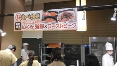 夕食は超豪華バイキング、いろんなコーナーがありローストビーフ、イクラ、天婦羅、寿司、刺身、他豊富な食材にフルーツやソフトドリンク、綿菓子が食べ放題に飲み放題、お腹がはち切れそうになった。- 旅行時期