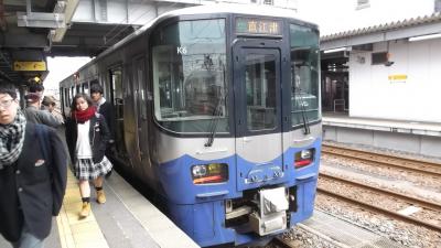 旅仲間3人で『鵜の浜温泉』に行く時に乗車しました。北陸新幹線開通によりJR北陸本線の一部が第三セクターに移行したようです。車内はセミクロスシートのボックス型で進行方向左には日本海の絶景が続き、眼を和ませてくれました。