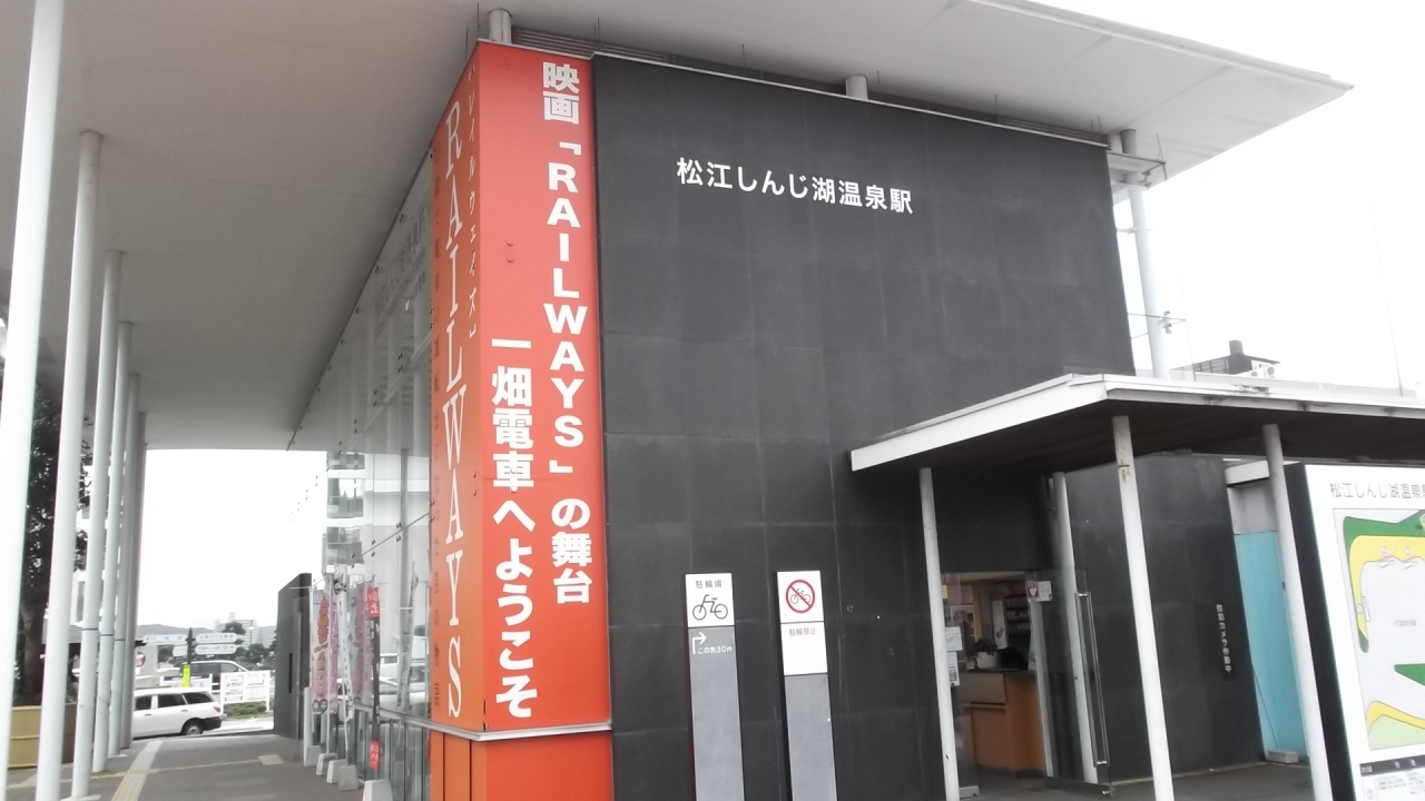 宍道湖の畔に佇む一畑電車のターミナル駅。ここから出雲大社駅方面と電鉄出雲市を結ぶ2系統の路線があります(出雲大社前へは川跡駅乗り換え)。駅舎はこじんまりして売店がある程度。宍道湖を目前にしてゆったり走ってくれるローカルな沿線です。