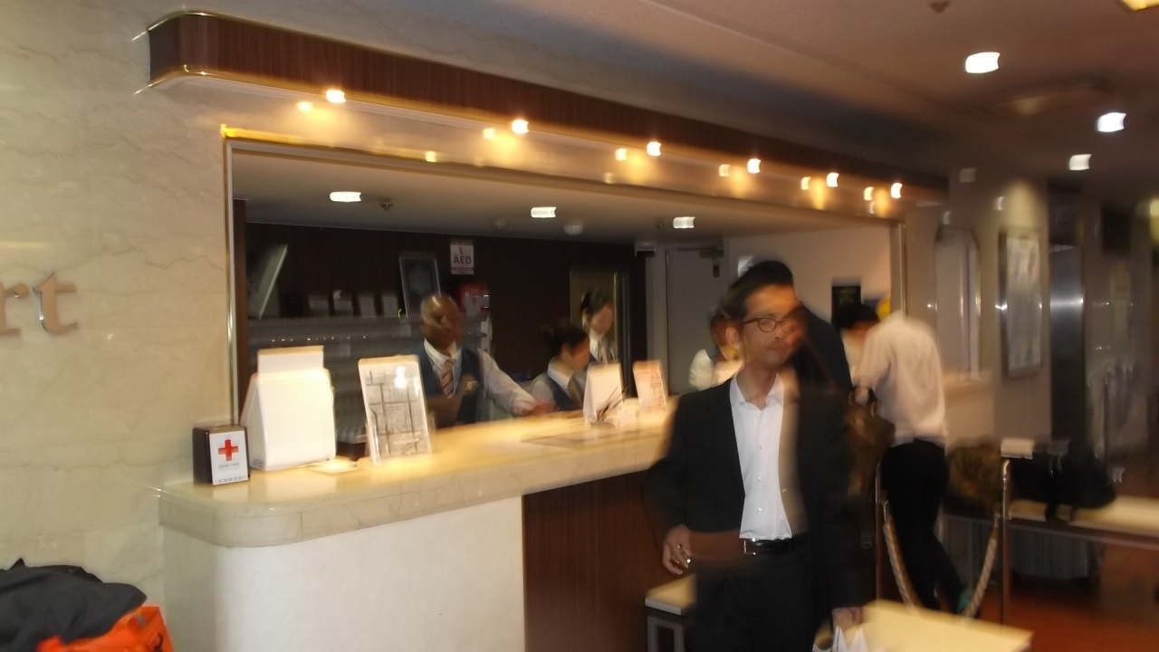 フロントでチェックイン、横に無料のコーヒーがサービスされている。部屋は7Fのツイン禁煙ツインルーム、ごくごく一般的なビジネスホテルで、朝食付3200円は格安でした。- 旅行時期