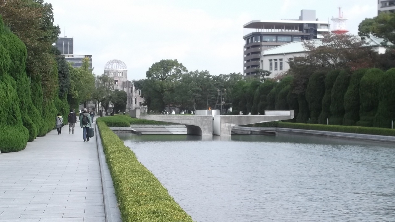 すぐ近くにホテルがありコンビニも隣接している。平和記念資料館や原爆ドームにも徒歩圏です。