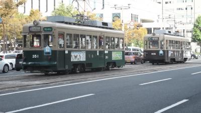 島根から高速バスで広島に移動。広電バスターミナル下車。すぐ横に広島そごうがあり、10Fで名物「広島お好み焼き」を食す。時折しも広島カープ優勝セールで生ビール100円と破格の値段。そしてすぐ近くの「紙屋町東」電停から路面電車で「中電前」下車。