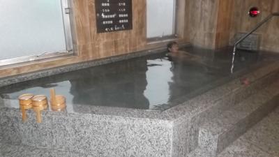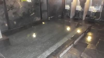 大浴場はやや熱めの風呂と広くやや温めの源泉かけ流し温泉で旅の疲れを癒す。アメニティーもそろっていました。