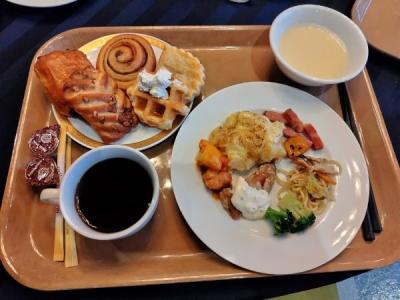 昨年も宿泊しているのでリピートだ。チェックイン前後に荷物を預かってもらえるので便利だ。そしてチェックインの際に頂いた温かいおしぼりが心地よかった。部屋はシングルで予約したはずだが、ベッドとデスクの間の通路や、窓とベッドの間のスペースが広い感じがした。ホテル側のサービスかと思ったが、ハイデラックスシングルで予約していた。今回も朝食をつけた。品数は特別多いわけでは無いが、質量ともに充分で、特に車麩の煮物とクラゲとキュウリの和え物が気に入った。デザートはグレープフルーツとヨーグルトだけだが、グレープフルーツが普通に美味だった。
