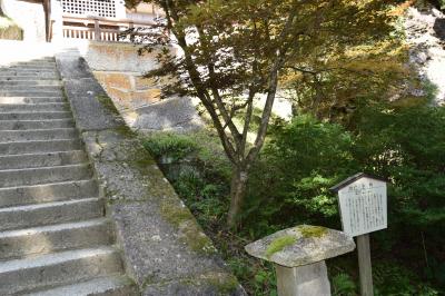 仁王門を過ぎて更に山道を登っていくと、左手の断崖側に納経堂と開山堂があり、更に少し登ると五大堂に辿り着く。道幅は狭く、訪問時はちょうど小学生の団体が昇り降りしているところだったので、動きが落ち着くまでしばらく待った。さて五大堂だが、断崖の上に建立された舞台造りで、そこから眼下に見下ろす眺望は素晴らしい。写真はその部分だけの画像で切り取るので景観の素晴らしさは伝わらない。なお五大明王が祀られているというが、どこに祀られているのか?尊顔を拝することができなかった。