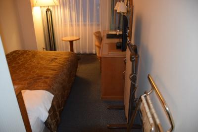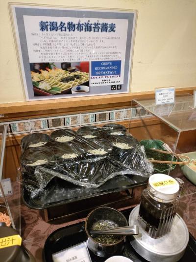 建物はやや古さを感じるが、周りの建物より高いので、外出から戻る際の目印になって有難かった。良かったのはスタッフの対応。到着は午後1時頃で、突然の雨でずぶ濡れに近い状態でホテルに着いて荷物を預けると、ベテランの男性スタッフが何も言わなくてもタオルを貸してくださった。ホントに有難かった。傘を借りて外出し、夕方のチェックイン時の若い女性スタッフの対応もとても感じが良かった。部屋はシングルで、一人で宿泊するには十分だ。朝食は新潟名物のタレかつや栃尾の油揚げなどもあった。そして越後そばがとても美味しかった。スイーツは、シフォンケーキと小豆ぜんざいのみだったが、シフォンケーキは美味だった。