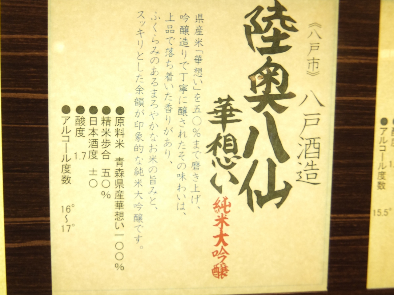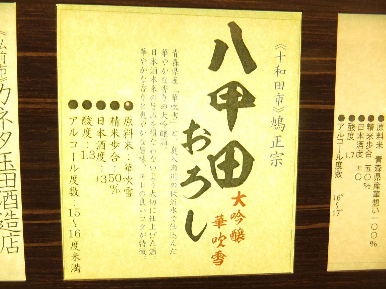 ここは今回の東北旅行で、最も行きたかった所の一つ。今年の初め頃、ネットで色々見ていると、新青森駅構内の旬味館に、地酒の自販機があることを知った。システムは、レジ横にカップをもらいに行き、自販機にセットする。リングのような所に置くので倒れない。100円を入れて、喜久泉、陸奥八仙、八甲田おろし、華一風、じょっぱりの五種類から選ぶ。といっても、二回行ったが、喜久泉は二回とも売り切れ。まず選んだのは陸奥八仙で、フルーティーで飲みやすかった。次の八甲田おろしもフルーティー系で、少しだけ雑味のような感じもあった。その三日後に飲んだ華一風は、フルーティーさは八甲田おろしより少ないかも。連れ合いの冷たい視線に負けないでがんばって飲んだ。