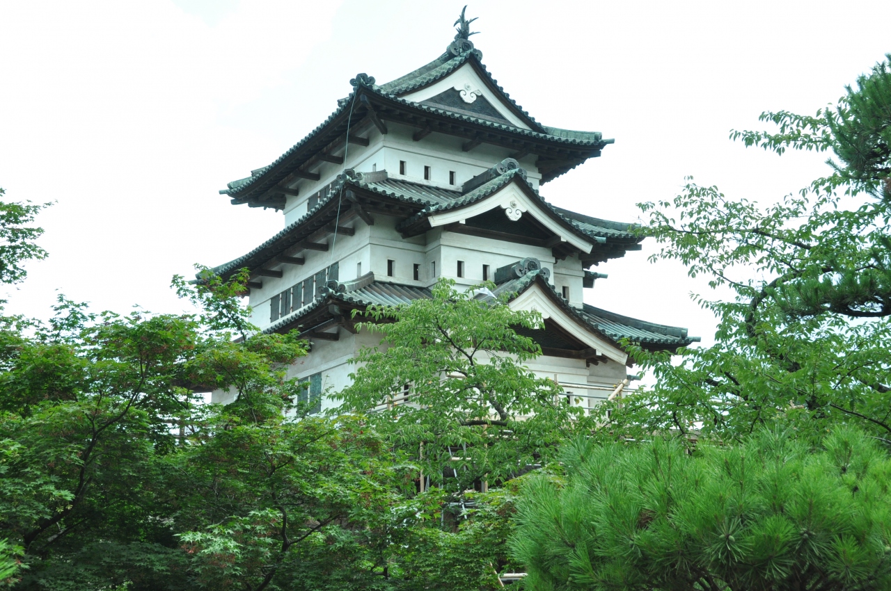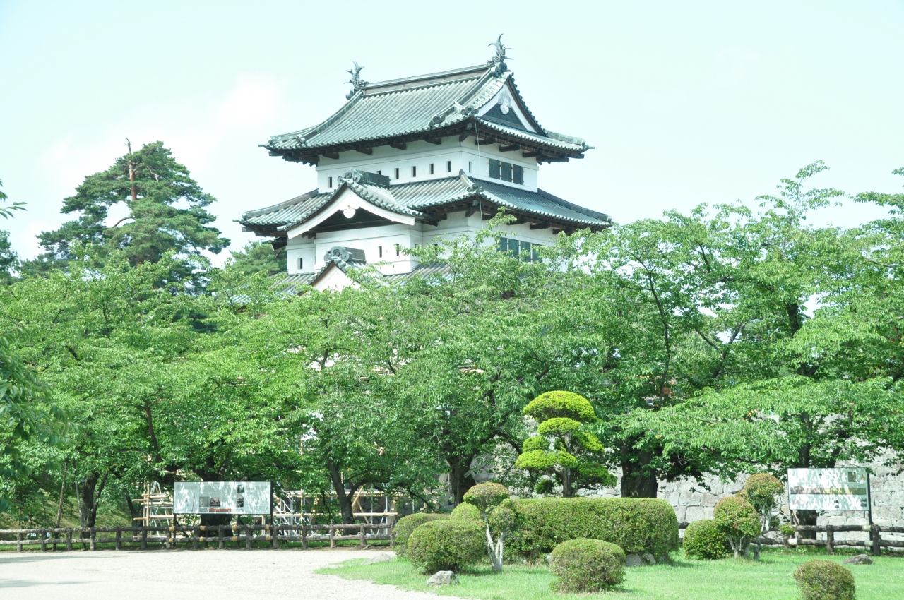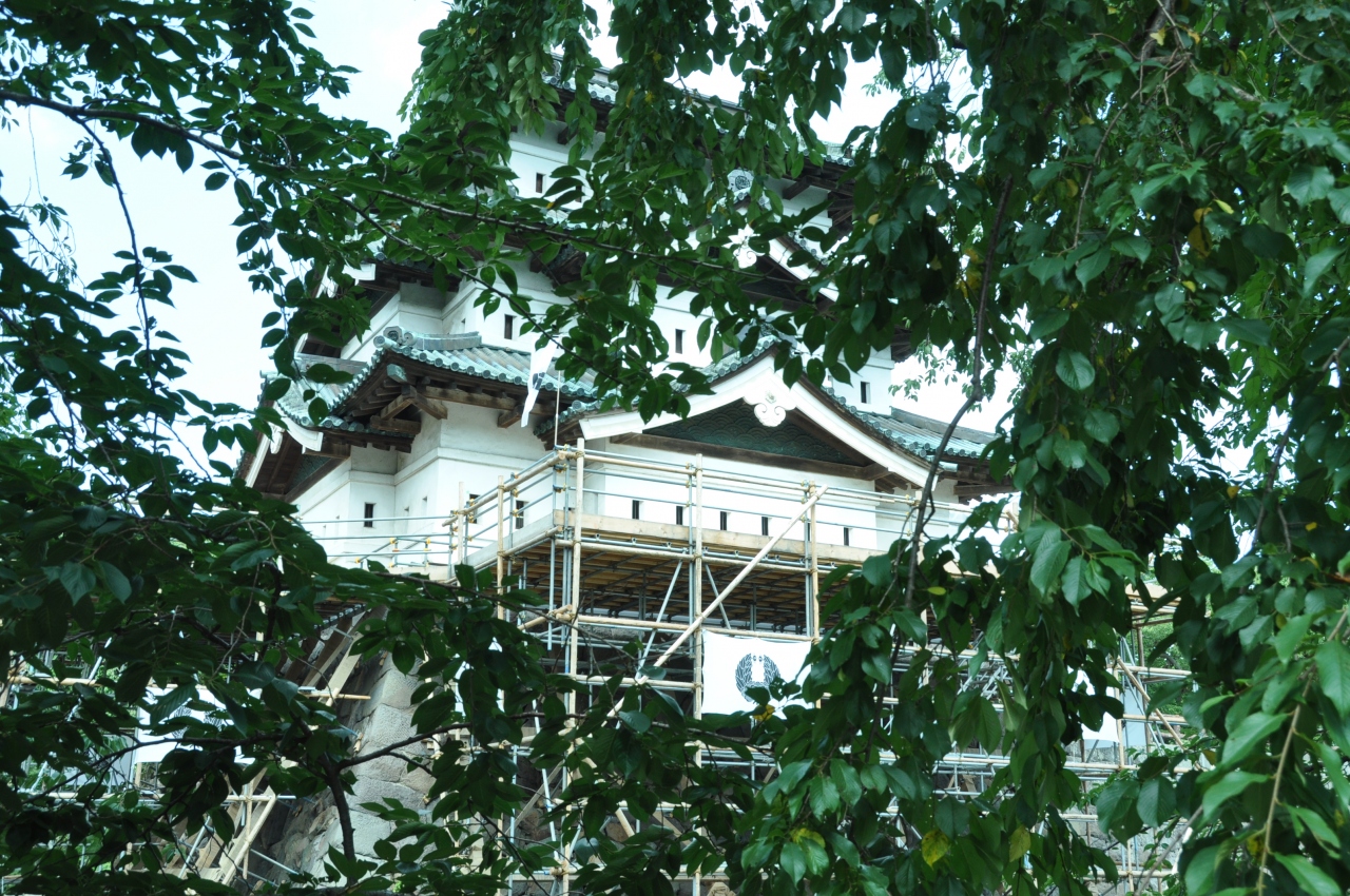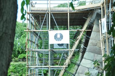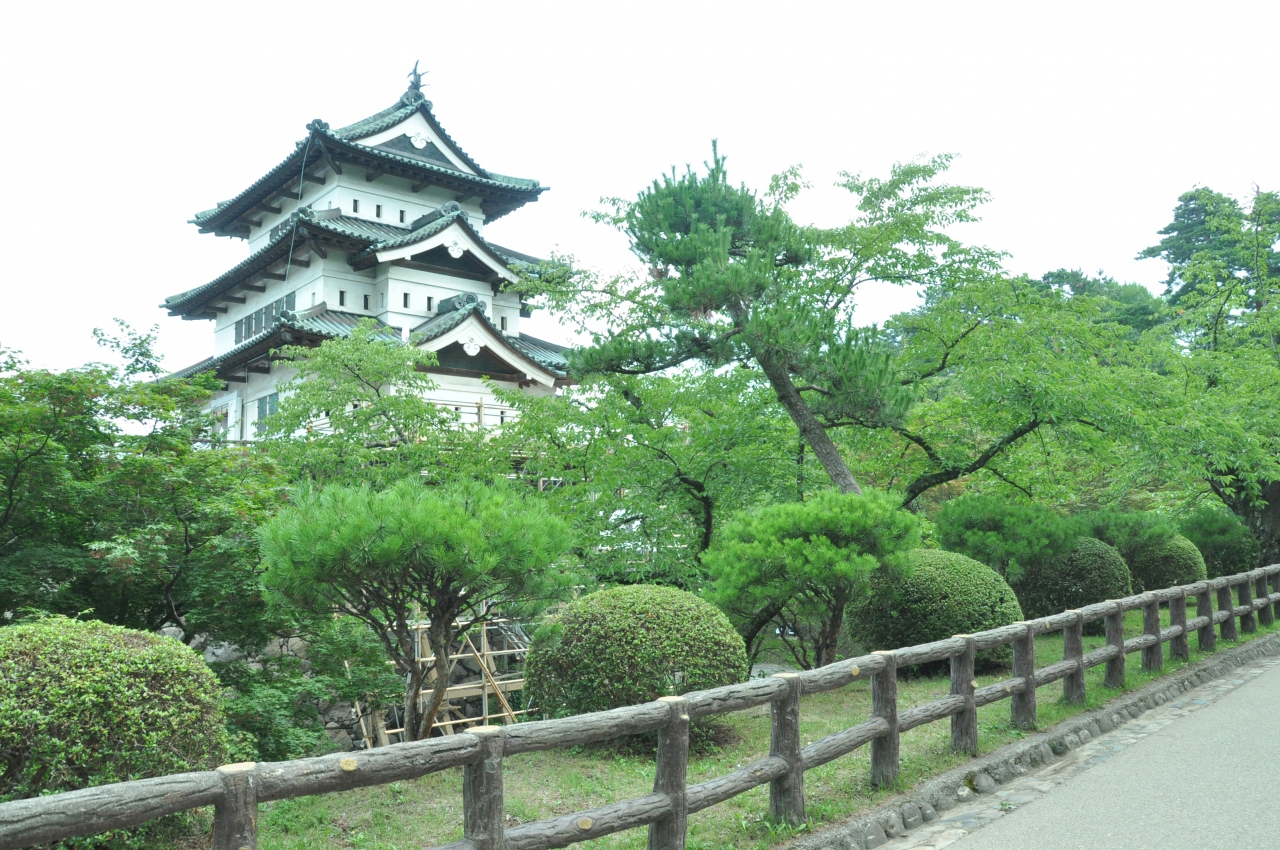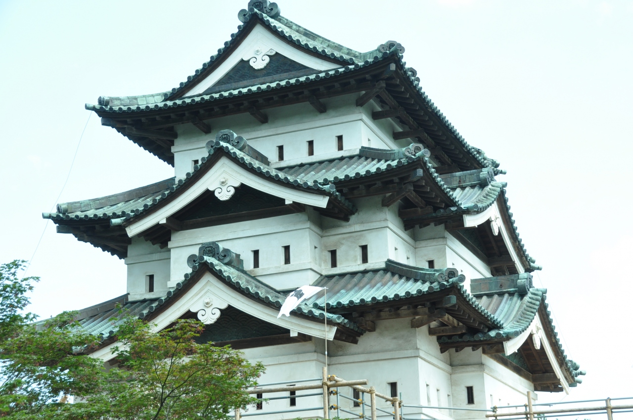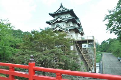 弘前城は20年以上前に行ったことがあるが、その時は、「何て小さな天守閣なんだろう」と思い、中にも入らなかった。今回、北東北旅行にあたって昔の印象があるので「どうしようか」と思ったが、古くからの木造天守閣で現存する12城の一つなので、弘前を計画に入れて弘前城に行ってみた。北門から入り、丑寅櫓や東内門を見て、修復工事中の天守閣にたどり着いた。二の丸東門与力番所あたりから天守閣が見え始め、赤い下乗橋から見る天守閣は実に見事だった。「何て立派な天守閣なんだろう」というのが率直な感想。確かに規模は大きくはないが、石垣も立派で見ごたえ十分な天守閣だ。太宰治が小説「津軽」で、弘前城を評して「稀代の名城」と書いているのもよくわかる。そして時期的に石垣修復工事による曳屋工事の前で、本当に良かった。