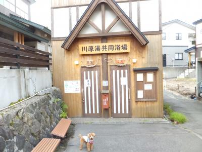 朝6時過ぎにホテルを出て、まず向かったのは川原湯。現地までの略図を見ると簡単そうだが、メインの道からの入り方はわかりにくい、というか民家の間を抜けていく。でもここを抜けるとすぐに建物が見えた。中に入ると靴置きのスペースと脱衣所があって、あとは浴室だ。浴室のドアを開けると湯船と床があるだけだ。事前にクチコミを見ると「ここは熱い」という書き込みがあったが全然熱くなく適温で、先客は誰もいなかったので、とてもゆっくりできた。- 旅行時期