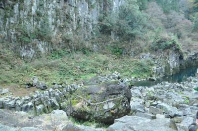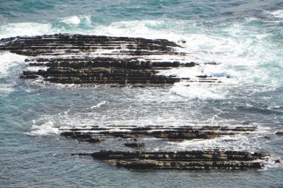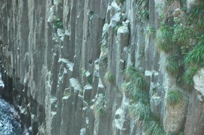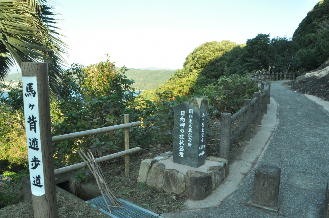 朝ホテルを出て、この日最初の見学地は馬が背。土地勘がないのでレンタカーのナビだけが頼りだ。国道から狭い枝道に入るまでは良しとして、山道を登り始めるとメチャメチャ道が狭かった。車を駐車場に置いた後、遊歩道を10分程歩くと展望所があり、断崖絶壁の柱状節理を見ることができた。その後更に進むと、まさに馬の背と言いたくなるような岩場が続き、そこには目の前には絶景が広がっていた。この景色を見ていると、はるばる九州まで来た甲斐があったと思った。