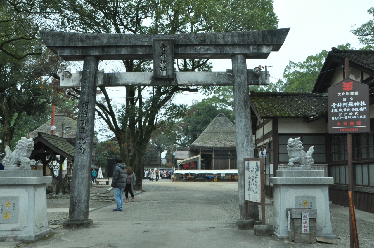 青井阿蘇神社が国宝指定を受けたのは、本殿、廊、幣殿、拝殿、楼門の建造物五棟と、棟札一枚、銘札五枚で、全国最南端の国宝建築物ということだ。現在の社殿群は慶長15年から4年かけて造営されたそうだから現在まで400年を超えている。建造物群はどれも歴史を感じさせるものばかりで、見応え十分だった。なお境内にはほかにも、稲荷神社、興護(おきもり)神社、宮地嶽(みやじだけ神社)、大神宮(だいじんぐう)の4神社があった。- 旅行時期