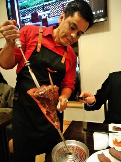 大地のテラス訪問は2度目になる。前回は約3年前で、大地のテラスといえばシュラスコで、3年前はブラジル人シェフだったが今はメキシコ人シェフとのことだった。シェフが各テーブルを回って目の前でシュラスコ(大きな金串に刺したローストビーフ、牛の尻の先であるイチボステーキ、豚バラ、ソーセージ等)の大きな肉をシェフが切り分ける。今回は7種類あり、食べきれない程の量で、希望すればお替わりもOKとのことだった。最後は焼きパイナップルだ。このほかに地場産野菜を中心としたサラダバーと日替わりのビュッフェが設置され、ワイン(BOXワインだが)やビールもグラス交換の飲み放題だった。これで5000円なので満足度は高いといえる。