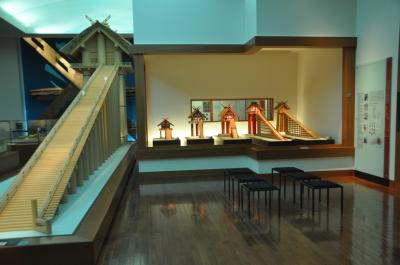 展示室に入ると、出雲大社巨大神殿の復元模型が大小展示されていた。復元の数値に多少の違いはあるが鎌倉時代には壮大な神殿が築かれていたことが想像される。
