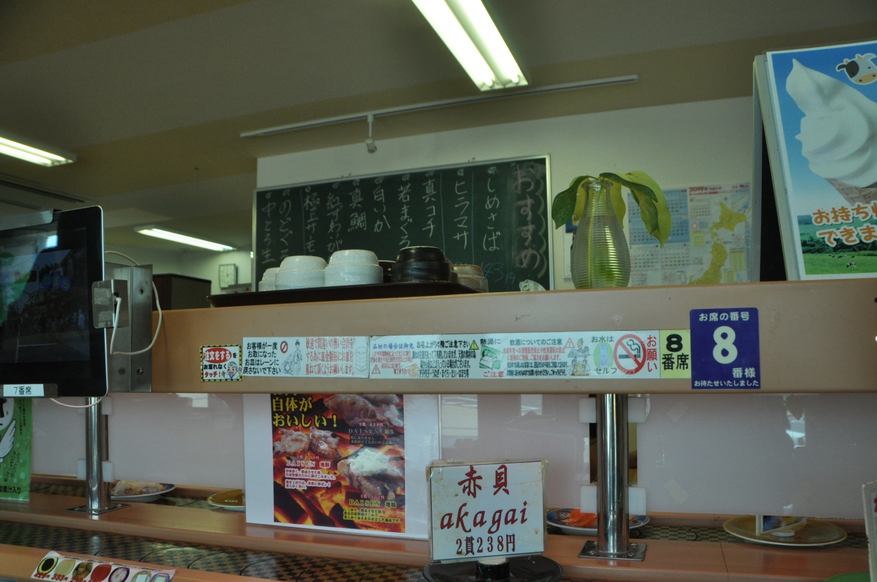訪問は土曜日の午後2時頃。満席でも行列はそれほどひどくはなかったが、スタッフが少なく、おねーちゃんが一人でレジも後片付けもやっていた。席に着いて最初に何種類か頼んだが、なかなか来なかった。そのうちに少しずつ届き始めたが、すごく待たされた。味そのものは良かったが、注文してからとても待たされたのが難点だ。これから猛暑の中、水木しげるロードを散歩したあと、松江に戻るバスに乗り遅れたら一時間待たされるので焦ってきた。なお最近、カメラの調子が悪くて接写がうまくいかないので、画像は少ない。