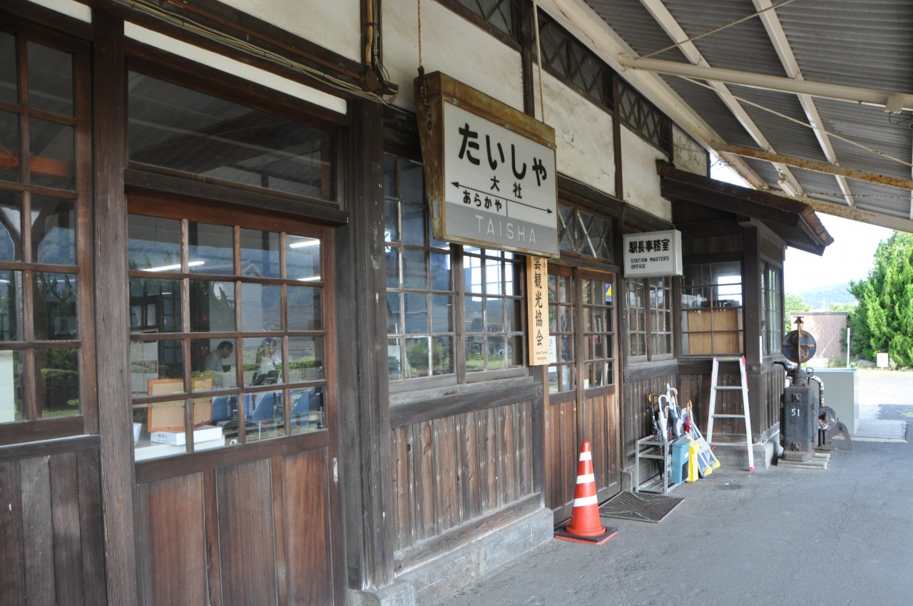 出雲大社方面に向って最初の訪問地は、旧大社駅だ。駅舎は明治45年に国鉄大社駅の開通により開業され、大正13年に新たに改築された。しかしながら、JR大社線は平成2年3月に廃止され、その後、旧大社駅舎は平成16年に国の重要文化財に指定された。