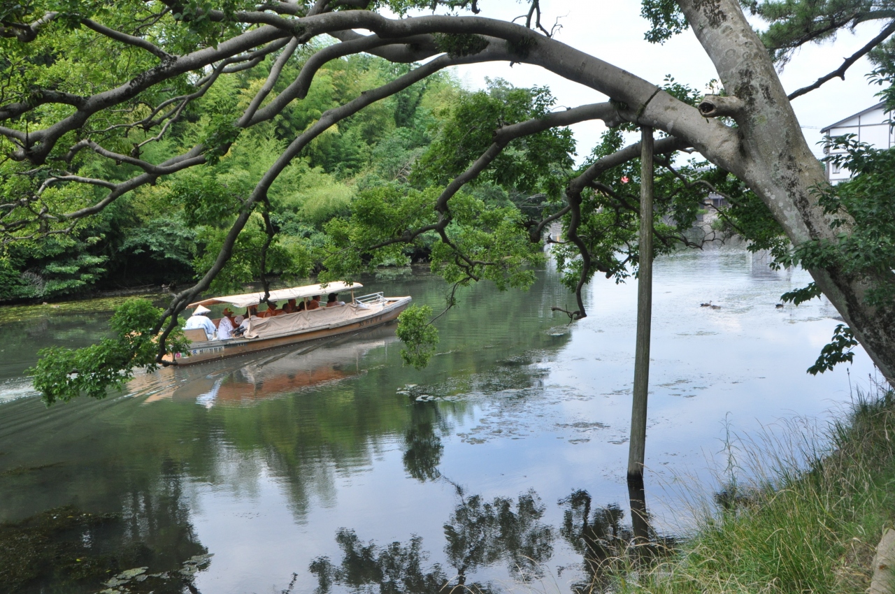 塩見縄手は、松江城北側のお濠に面した約500mの通りだ。縄手とは、縄のように1筋に延びた道路のことをいい、塩見縄手には武士の家中屋敷が並んでいたそうだ。なかでもこの武家屋敷に一時住んでいた塩見小兵衛が後に異例の栄進をしたため、それをたたえてこの通りを塩見縄手と呼ぶようになったそうだ。画像は通りの両サイド、つまり武家屋敷側とお濠側を別々に撮ったが、双方を一枚に収めるべきだった・・・残念。