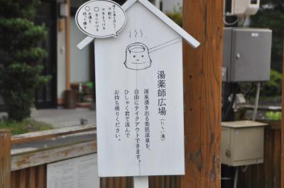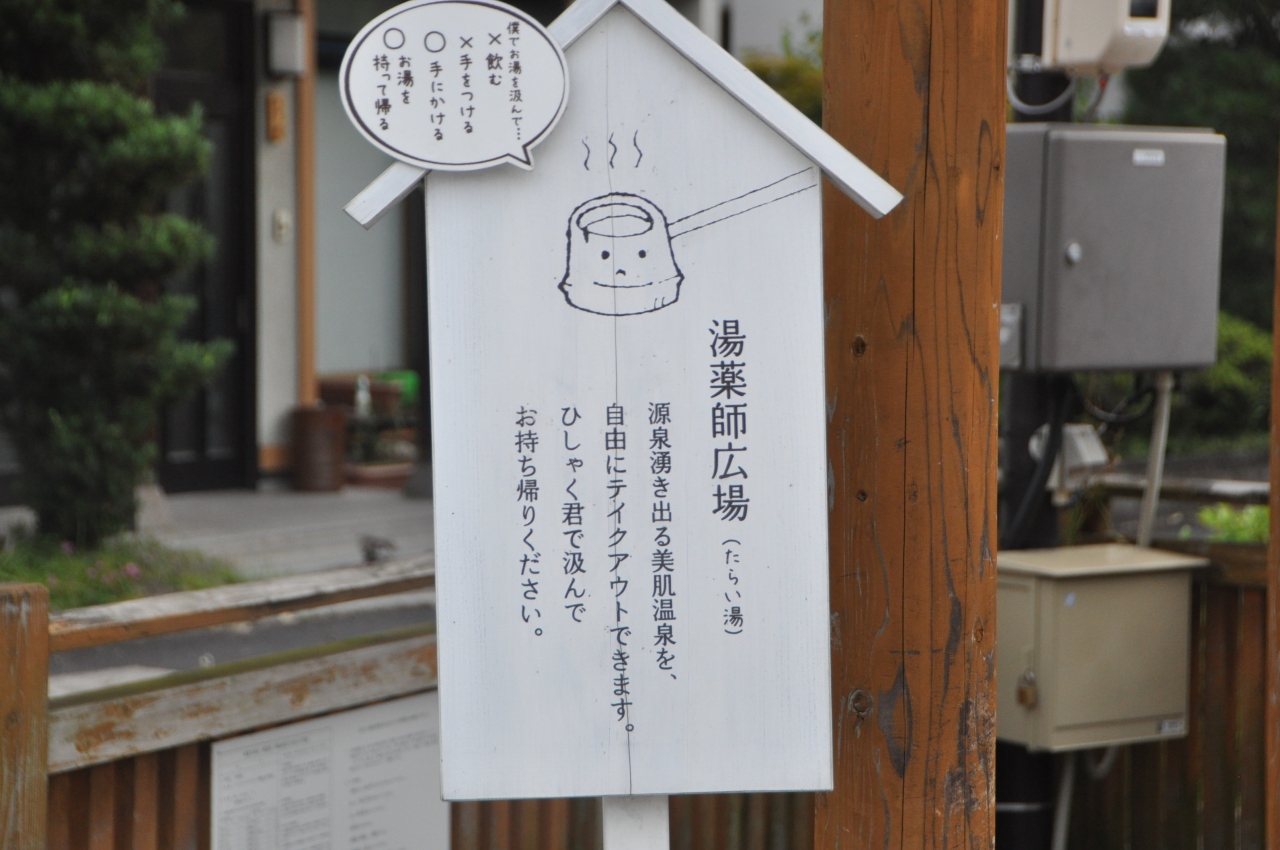 玉造温泉に宿泊して早朝散歩をしていると、湯薬師広場という所に出た。ここは、足湯ならぬ手湯ができるところだった。そして「源泉あふれる美肌温泉を、自由にテイクアウトできる」ということだった。看板には「湧いているのは天然の化粧水」とも書いてあり、お肌に良いそうだ。このような温泉水をテイクアウトできるというのは素敵な話だ。ただし全くノーマークで手ぶらだったので写真撮影のみ。