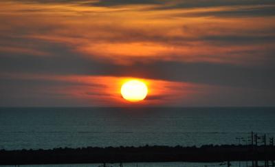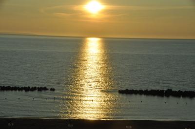 羽幌町の寿司屋で夕食をすませた後、まだ明るかったので、サンセットビーチの夕日を見に行くことになった。場所は小高い丘の上だ。地元の人が勧めるだけあって、日本海に沈む素晴らしい夕日を見ることができた。夕食から婿殿が加わっているので、7人で写真を撮ったり、美しい夕陽を眺めたあと、ホテルに戻った。