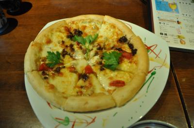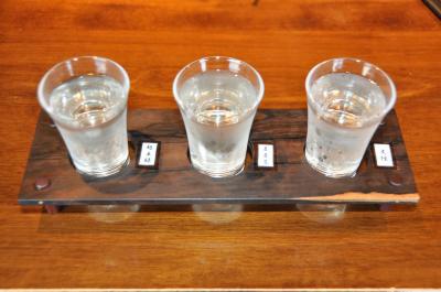 山陰旅行について調べていると、王禄という銘柄の地酒がとても評判がいいということを知り、是非飲みたいと思っていた。ところが王禄を扱っているところは実に限られていることがわかり、ホテルから近いところはどこか調べて、ホテルと一緒に決めたのが、こ根っこやだ。ここは「王禄飲み比べセット」というのがあり、これを飲むために松江に来たと言っても過言ではないほどだ。画像は、左から、超王禄 80% 丈径(たけみち)。注文した料理では、しじみピザがおいしかった。