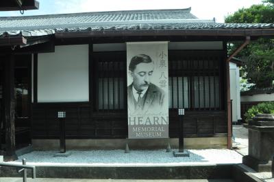 松江城を見学した後、塩見縄手方面に向かった。といっても道は細く、山の中を歩くような感じだったので、この道でいいのか?と少し心配になったが、そのうちにお濠に出て観光船も見えてきたので間違いなかった。お濠に沿って暫く歩くと、小泉八雲記念館が見えてきた。入館すると、「ハーンを慕った二人のアメリカ人」という企画展を行っていた。小泉八雲に特化した小さな記念館だが、八雲がかなり波乱万丈の生涯を過ごしたことを知ることができた。撮影禁止なので内部画像はない。なお当日は強烈な猛暑日だったので、入館するとエアコンが効いていて、生き返った気がした。