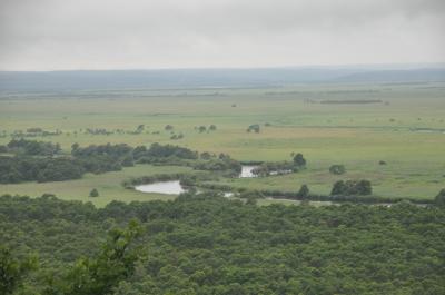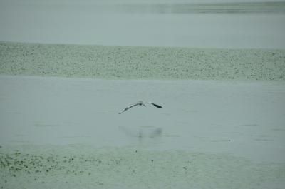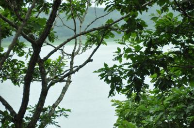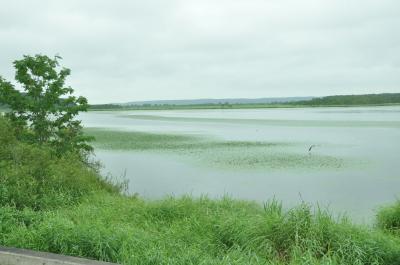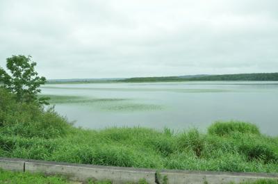 シラルトロ湖畔のホテルに宿泊し、早朝の散歩でシラルトロ湖を見ようとしたが、湖周辺には木が生い茂り、下はすぐ崖になっているので、湖近くなのに景観を楽しむ事は出来なかった。そこでガイドブックを見ると、サルルン展望台やサルボ展望台が割と近くにあるようなので車で行ってみた。10数分ぐらい乗っただろうか、ようやくサルルン展望台の近くに来たが、更にかなり山道を登っていかなければならないということなので断念。朝食後に釧路に向かい、ホテルを出て数分の所に無人パーキングがあり、そこに車を停めて湖の写真を撮っていると、大きな鳥がいて、周囲の景観とともに辛うじてカメラに収めることができた。