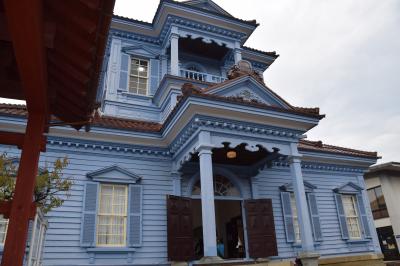 「明治新政府の威信を示すために建設したとされ、擬洋風建築における一つの到達点を示すものとして評価されている。外部窓廻りなどにルネサンス様式を模しているが、宝形造(ほうぎょうづくり)の堂々たる外観で、屋根の大棟(おおむね)や破風妻飾りなどは在来様式を巧みに取り入れている。(抜粋)」- 旅行時期