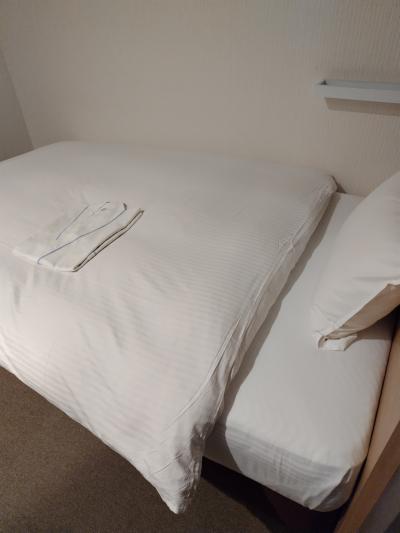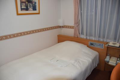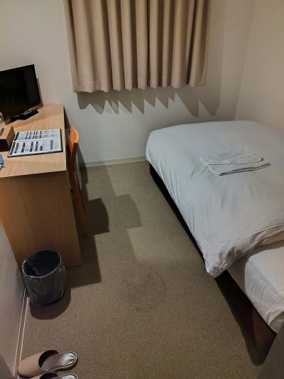 青森駅から徒歩数分の距離なので、公共交通機関利用にはとても便利で、チェックアウト後も荷物を預かってもらえるので、駅から近いということは本当に有り難い。部屋は落ち着いたシングルルームで、ベッドとデスクの間がちょっと狭い。またベッドとテレビが大きく、この二つで部屋のほとんどを占めてる感もある。