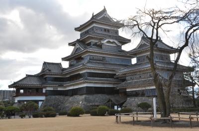 国宝4天守閣訪問の最後となった松本城。毎回、津軽海峡を渡らなければならないというハンディ?もあり、最初に行った姫路城(もちろん修復工事中)から3年かかりました。フルムーングリーンパスを使って、あえて東北新幹線E5系や長野新幹線に乗ったりして、松本到着は旅行2日目の午後でした。駅から約15分ほど歩いて、ようやくたどり着きましたが、あの五層六階の天守閣、お堀に映る姿を見たら疲れも吹き飛びました。復元天守と何が違うかといえば、やはり内部がほぼ当時のままという事にしびれます。急な階段、床や手すりの古さ、そして武者走りなど、現存天守でなければ味わえない雰囲気を堪能しました。そして驚いたのは月見櫓です。当時の城主が、家光公来訪のために造りながらも結局その機会を得なかったそうですが、月見櫓の窓から見えるのは雄大なアルプスの山並みです。北アルプスを背景にした松本城も美しいですが、月見櫓の窓(内側)から見るアルプスは、四角い窓が窓枠となり一幅の名画さながらです。当時の大名達も同じ風景を見たんだろうなあと感慨に浸りました。帰路、松本駅で地酒ワンカップを買い込み車中で呑みましたが、おいしかった~。