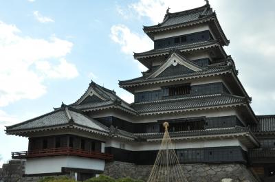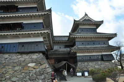 松本城の築城者は石川数正とされているが、かつて深志城と呼ばれていた時代から信濃主語の小笠原氏の居城であり、その深志城を修繕・改修したのが石川数正ということになるようだ。天守の築城年代は、文禄2~3年(1593~4)と考えられ、大天守・渡櫓・乾小天守のまとまりを連結式天守と呼び、戦いの多い時代だったため、石落としや狭間が多く、窓は少なく守りを固めている。一方、大天守・辰巳附櫓・月見櫓のまとまりは複合式天守と呼ばれ、平和な時代の建造であるため、戦う備えはない。従って松本城は、大天守・乾小天守・渡櫓・辰巳附櫓・月見櫓の5棟からなる連結複合式天守である。他の方のクチコミを見ると、時期によっては入場券購入だけでも行列になることもあるようだが、このときは全く並ばなくて良く、武士と写真を撮ることもできた。