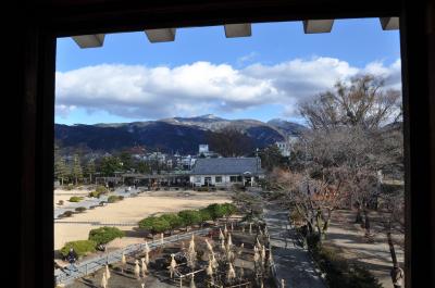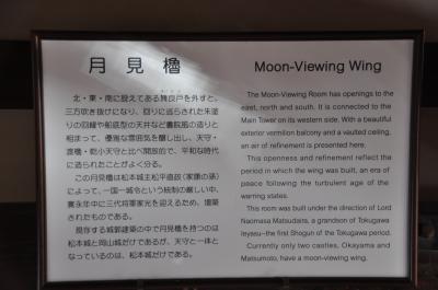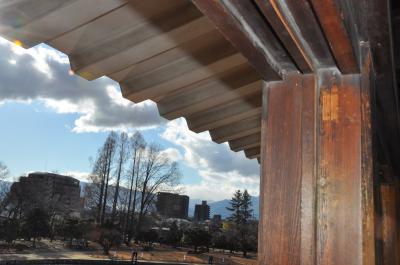 大天守・渡櫓・乾小天守を建築した石川氏が改易された後、城主が数代入れ替わるが、城主松平直政の時代に辰巳附櫓と月見櫓の建設が行われ、現在の城郭が出来上がった。松本城天守閣を見学コースに従って進むと、最後にたどり着くのが月見櫓。戦乱の時代に造られた大天守・渡櫓・乾小天守とは違って、月見櫓は平和な時代に造られただけあって、内部は明るく窓も戦闘用ではない。将軍家光公が京都からの帰りに善光寺参りをするため、松本城に立ち寄ることになり、松平直政は家光のために急遽「辰巳櫓」と「月見櫓」を造った。しかし中山道の崖崩れにより家光の善光寺参詣は中止となり、松本城を訪れることはなかったとのことだ。それにしても、月見櫓から眺める景色は名画さながらだ。