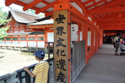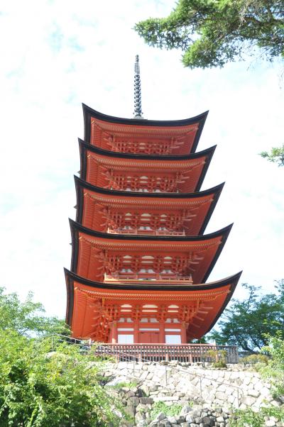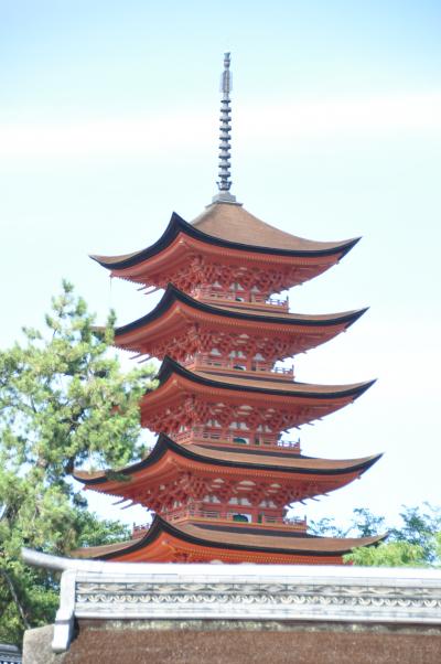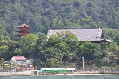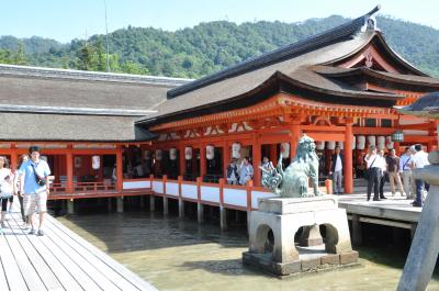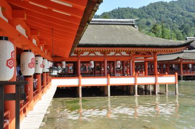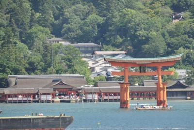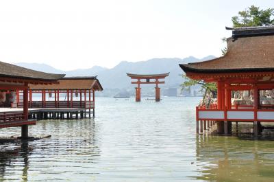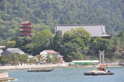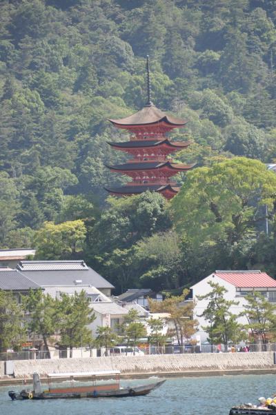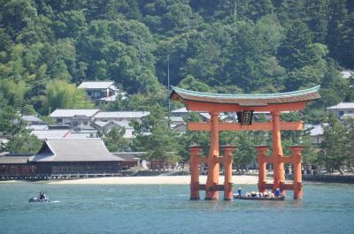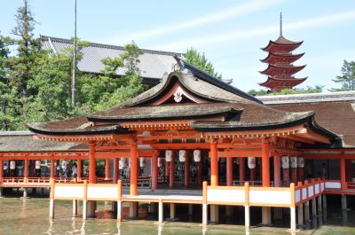 広島駅で昼食をとった後、いつか行ってみたいと思っていた宮島に、JRで向かった。宮島フェリーからも大鳥居が見えるので、フェリー乗船中からワクワク感が高まった。宮島に到着後、鹿の出迎えを受けつつ大鳥居に向かった。午後なのでカメラ的には逆光だったが、まず大鳥居に目を惹かれる。ここでしばし撮影タイム。宮島といえば何と言っても、世界遺産に登録された厳島神社の社殿や大鳥居だが、他にも国の重要文化財に指定されている千畳閣や五重塔など、本当に見どころが満載だ。大鳥居の夕景やライトアップされた厳島神社なども見たかったが、時間的に無理だったので、いつかリピートしたい。