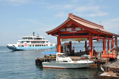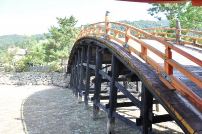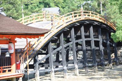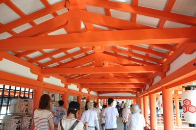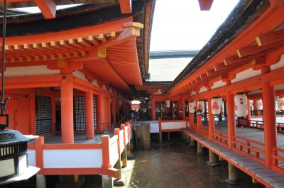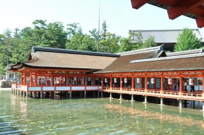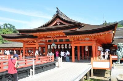 厳島神社は、平清盛により海上に立つ大規模な社殿として整備されたのは有名な話だが、社殿は、本殿、拝殿、回廊など6棟が国宝に、14棟が重要文化財に指定されている。自分のような国宝参拝マニアはどうしても国宝に目を奪われがちだが、ここには国宝級の重要文化財がたくさんある。訪問当日は晴天だったので、空と海の青に朱色の大鳥居が美しかった(写真にすると逆光気味の色合いになってしまったが)。なお満潮だったので、海に浮かぶ回廊を歩きながら社殿の一つ一つを見ていると、何か別世界にいるような穏やかな気持ちになった。それにしても、海に浮かぶ社殿という発想や、当時の建築技術には感心してしまう。