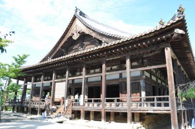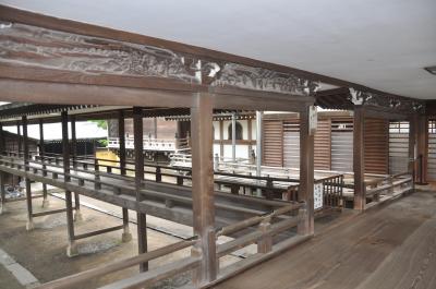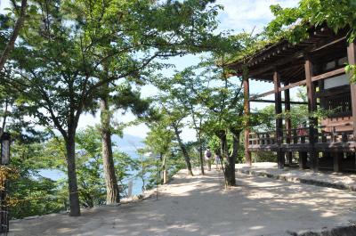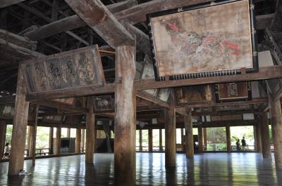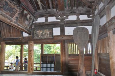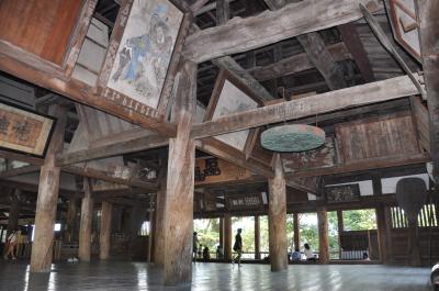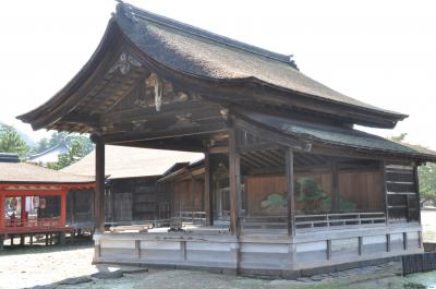 秀吉公が、千部経の転読供養をするために、安国寺恵瓊に建立を命じたが、秀吉の死により未完成のまま現在に至っている。明治時代に秀吉公と加藤清正公が祀られて、豊国神社となったそうだ。天井は梁がむき出しになっており、柱や梁は見るからに古く数百年の歴史を感じさせる。中に入るには100円の拝観料が必要だが、数百倍の価値があると思う。縁側のような所では、寝そべっている人が何人かいたが、厳島神社・宮島周辺を歩き疲れたためだろう。それを見ると、自分も座って一休みさせてもらった。大きな絵馬のような物も多数奉納され、数百年の歴史に囲まれた空間で時を過ごすというのは、何とも贅沢な一時であった。