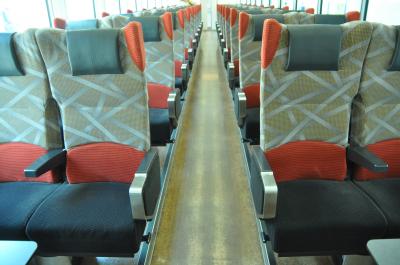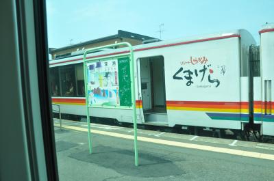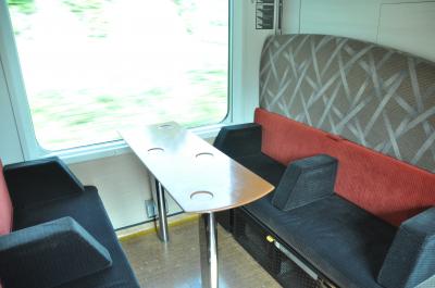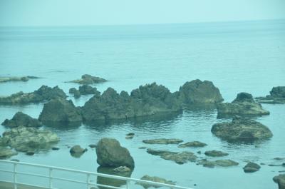 自分たちが乗ったのは3号車のA・B席だが、ボックスシートはテーブルもあって、向かい側に誰も来なければ気兼ねなく過ごせるだろう。けっこう海岸沿いを走り、千畳敷の他にも見事な絶景を見ることができ、車掌さんがアナウンスしてくれた。深浦では、くまげら編成と出会った。- 旅行時期