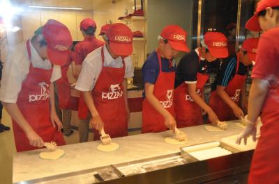 キッザニア東京は「こどもが主役の街」というのがキャッチフレーズのようだが、中学生の職業体験としても利用できる。特に自分たちでつくる食べ物系のパビリオンが人気のようだ。Pizza―laも人気のパビリオンだ。好きなピザを選び、丸めた生地を薄くのばしたらメニューに合わせたソースをぬり、チーズやソーセージ、コーンなどのトッピングをのせる。オーブンでこんがりと焼きあげたピザを箱に入れて手作りピザの完成。DONQもすごい人気で結構待ち時間もあった。パンの作り方を教わった後、パンの生地をこねてクロワッサンをつくった。自分でつくった焼きたてパンはお土産にもらえる。森永製菓さんでは、手作りでオリジナルのお菓子をつくって食べることができた。クライミングビルディングは、クライミング体験と、ビルに登りビルの点検修理を行う仕事を選べる。前者は安全な登り方や降り方を教えるクライミングの専門家が指導し、後者はビルに登る装具を身につけてカギを交換する仕事をする。消防士体験は数名が1チームになって、消火作業体験をする。指導の方に作業手順などを教えて頂き、パビリオン内の建物が火災になったという想定で実際に消火活動体験をする。火災の様子は結構臨場感があり、鎮火の様子もよくわかった。はとバスは、観光バスでキッザニアの街を1周するお客さんに街の紹介をする仕事だが、もちろんお客さんになって観光することもOK。大人もとても多くもっぱら子どもたちの様子を見たり写真を撮ったりすることが中心となるが、休憩室にはドリンクバーや雑誌もあるので、疲れたら「フーッ」と休める。