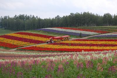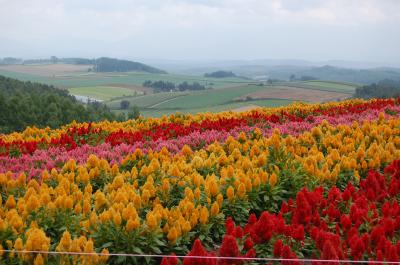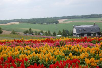 美瑛について、あまり予備知識のない状態で「ぜるぶの丘」そして「四季彩の丘」に行った。「四季彩の丘」は国道からけっこう入るが、まずロール君がお出迎え、周りの景観とも相まって何か心が癒されるような気持ちになる。「四季彩の丘」は、なだらかな起伏の丘そのものが広大な展望花畑になっていて、ルピナスやケイトウだろうか、そしてヒマワリなどたくさんの色とりどりの花が丘を彩る様は見事と言うしかない。そこには、雑誌やインターネットで紹介されている通りの景観が広がっていた。また、トラクターで引っ張る観光馬車はのどかさを醸し出していた。秋の晴れた日に行ったが、今年もそろそろ花の美しい季節を迎えていることだろうなあ。
