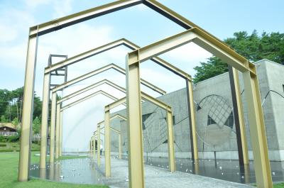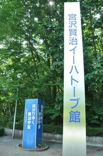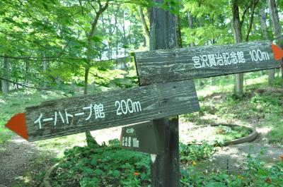 宮沢賢治記念館を出て、イーハトーブ館を目指して山を下っていくと、日時計花畑やちょっとしたモニュメントなどがあり、結構退屈しないで歩けた。イーハトーブ館は外観も内部も独特な造りになっており、賢治に関する様々な資料を展示、販売していた。ちょうど「イーハトーブの旅」というタイトルの映画を上映するところだったので、25分間たっぷり見せてもらった。花巻を中心とする賢治の身の周りを賢治がどう受け止め、作品にどう反映しているのかなどを物語っており、賢治の世界観を伝えるシアターとしては一級品のレベルだと思う。賢治の作品をもっともっと読みたくなった。猛暑の中けっこう歩いたので、涼むのにも良かった。