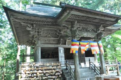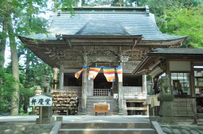 中尊寺参拝のためJR平泉駅に到着したのは午前8時頃で、るんるん号も運行前なので、荷物預かりで荷物を預けて歩いて行った。まず月見坂を登っていくが意外ときつかった。でも芭蕉もこの坂を登ったんだなあと思いながら進むとちょっと感慨深かった。八幡堂、弁慶堂、地蔵堂、観音堂などに立ち寄って写真を撮ったりしながら、本堂にたどり着いた。本堂はさすがに立派な造りで、中でお参りした。次に峯薬師堂や不動堂、大日堂などを見て、いよいよ讃衡蔵に到着。ここで入場料を払って中を見学して、金色堂に行った。金色堂では声ガイダンスを聞きながらしばらく拝観して、重要文化財である経蔵を通って旧覆堂に行った。旧覆堂も重要文化財で、室町時代中期の建築だそう。ここでもいっぱい写真をとった。あとは釈迦堂前を通ってバス停に行くだけだったが、「国重要文化財指定 野外能楽殿」の字が目に入ってしまったので、時間を気にしながらも行ってみた。結果は大正解。江戸時代末期に建立された素晴らしい能舞台を見ることができた。