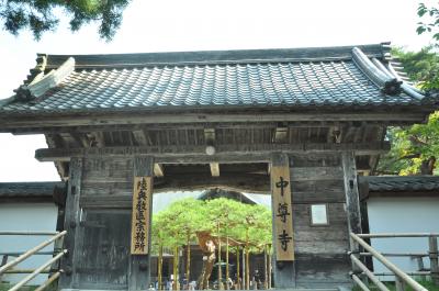 中尊寺金色堂は、藤原清衡公が15年の歳月をかけて造らせた金色の阿弥陀堂で、国宝第一号。ご本尊は阿弥陀如来、脇侍に観音菩薩、勢至菩薩、六体の地蔵菩薩と持国天・増長天が本尊を取り巻いている。以前、金色堂の修復工事が終了する頃、NHKで金色堂の修復工事や輝きの様子についての番組を見たとき、内陣の螺鈿細工や柱の彫金などかなりアップで映しており大きいという印象があったが、実際はそれほど大きいものではない。音声ガイダンスを聞きながら、金色に輝く世界遺産の阿弥陀堂を拝観した。なお堂内は撮影禁止なので、内部の写真はない。