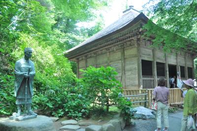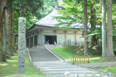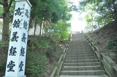 JR平泉駅から中尊寺に向かう途中、右側の小高い丘を登った所にある。入口に拝観券を販売している所があり、そこの方が色々なことを教えて下さった。ここは毛越寺の管轄であり、義経が亡くなって500年後に芭蕉がここを訪れ、今の義経堂を目にしたそうだ。また近年、「奥の細道」で芭蕉が歩いた経路を大垣まで歩いてまわる方も来るということだった。さて、丘を登り切ると、北上川や束稲山の展望が目の前に広がる。まず右側(お堂と反対方向)に行くと、芭蕉の句碑「夏草や 兵どもが 夢の跡」があった。そしてお堂の方に行くと、義経公の木造が祀られていた。他に訪れる人は誰もいなかったが、芭蕉もこのお堂を見たと思うと、感慨深かった。