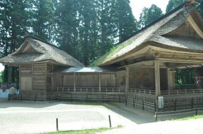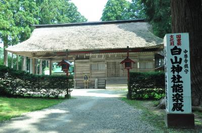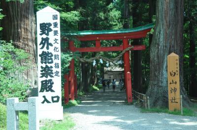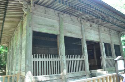 中尊寺参拝のため月見坂を登り、八幡堂、弁慶堂、地蔵堂、観音堂などを通って本堂を参拝し、讃衡蔵で阿弥陀様に手を合わせ、金色堂を参拝して経蔵を通って旧覆堂に行った。あとは釈迦堂前を通ってバス停に行くだけだったが、「国重要文化財指定 野外能楽殿」の字が目に入ってしまったので、時間を気にしながらも行ってみた。結果は大正解。江戸時代末期に建立された、素晴らしい能舞台を見ることができた。月見坂に向かう経路からは少し入っていくが、古い建造物に興味があって時間があれば一見の価値がある。