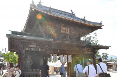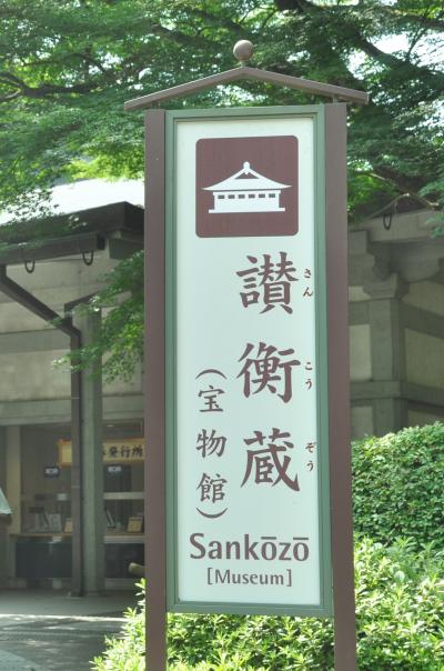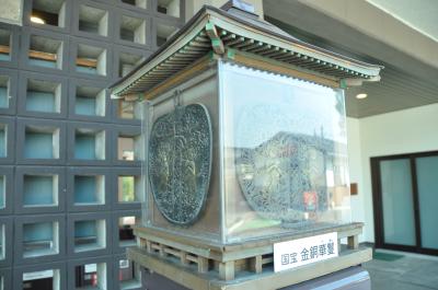 讃衡蔵は奥州藤原氏の遺した文化財約3000点あまりを収蔵する宝物館で、ここで入場料800円を払って、金色堂なども含めて見学できる。入館してすぐの所に、三体の丈六仏(中央に阿弥陀如来、向かって右に薬師如来、左に大日如来)が安置され、いずれも重要文化財で圧倒的な存在感がある。他にも千手観音菩薩立像、国宝の金銅華鬘や螺鈿平塵案、そして一切経や曼荼羅図なども展示され実に見事な展示内容であった。金色堂以外でもこれだけの宝物を展示しているなら入場料も高くないと思った。なお館内はエアコンが効いており、猛暑日だったので、とても有り難かった。